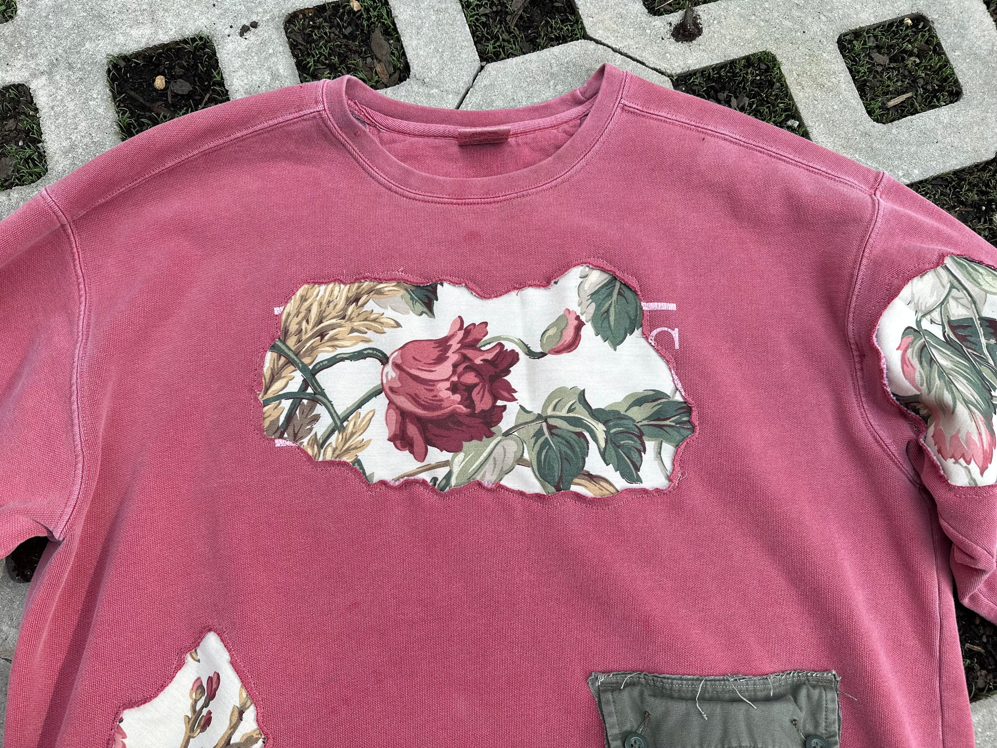 1 of 1 Handmade Faded Red Vintage Floral Crewneck