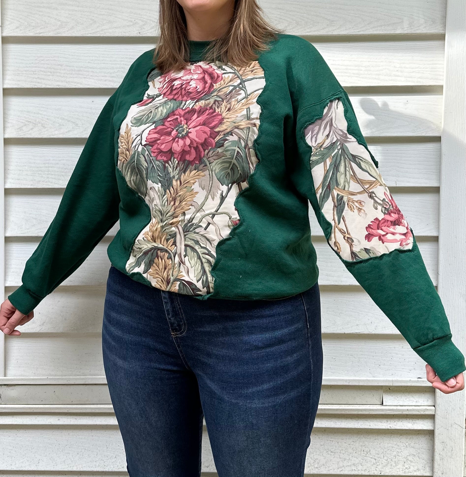 1 of 1 Handmade Green Vintage Floral Crewneck