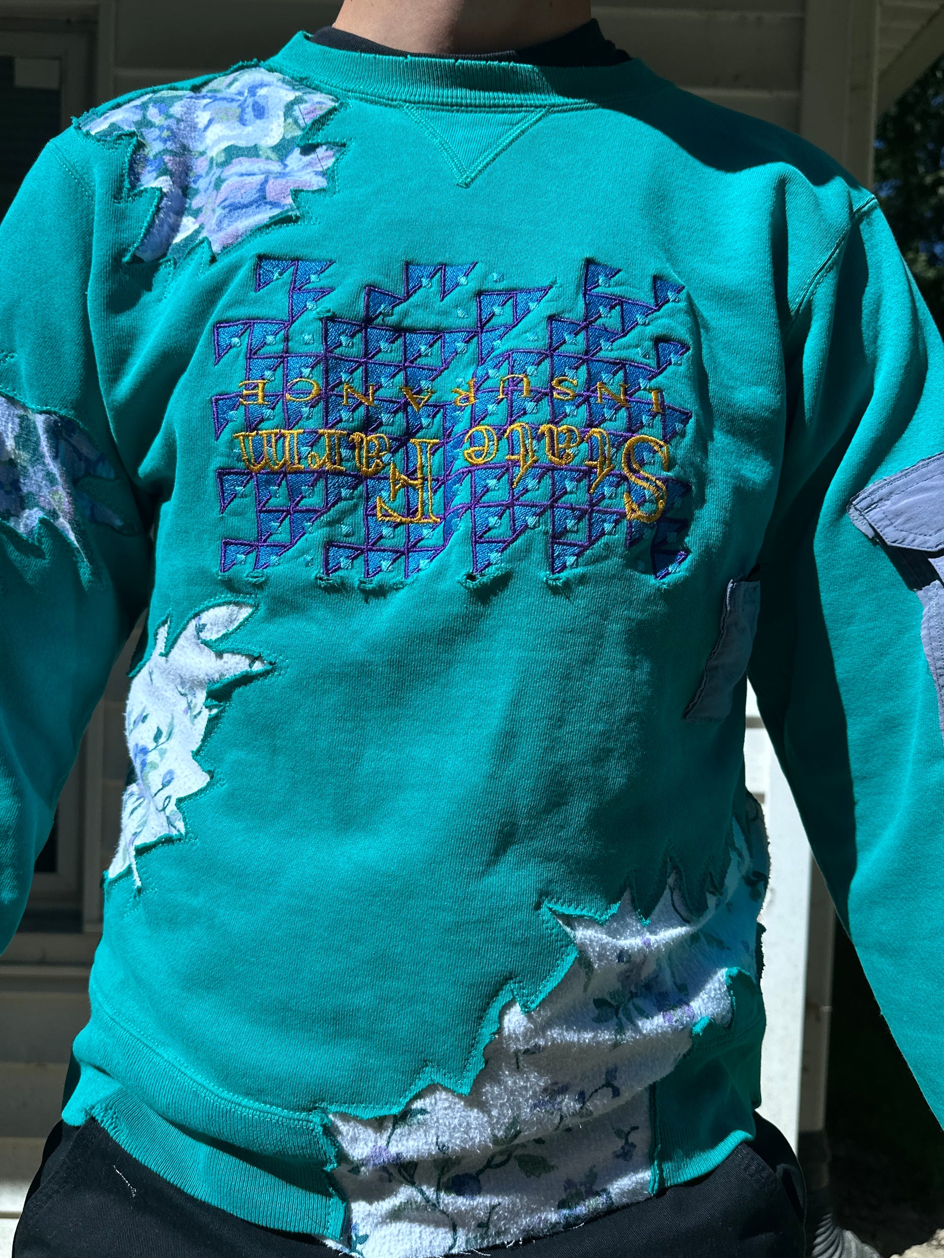 1 of 1 Handmade State Farm Distressed Floral Crewneck Teal
